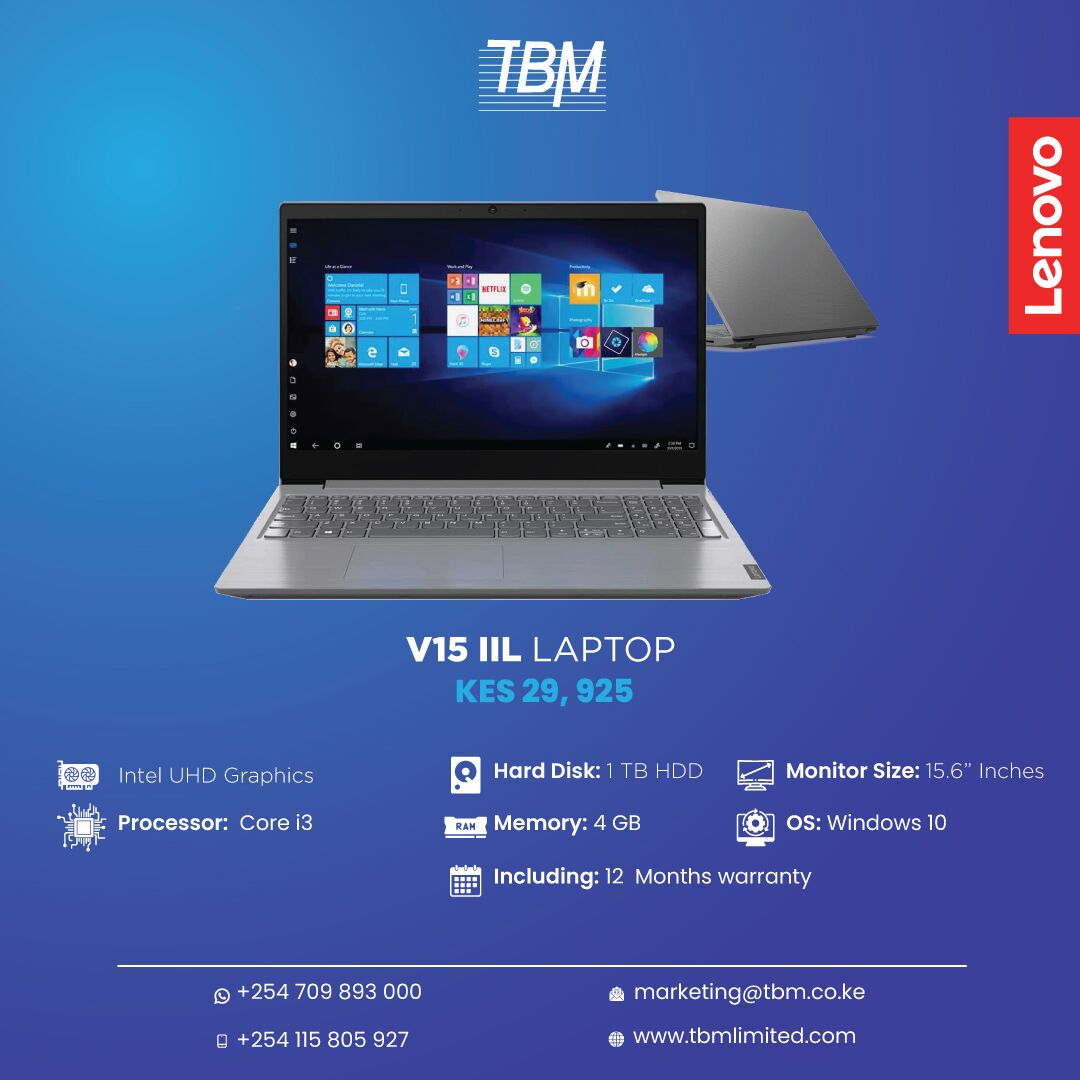 Core i3, 4G RAM, 1TB HDD, Monitor size 15.6 Inches, Intel UHD Graphics, Windows 10 operating system.